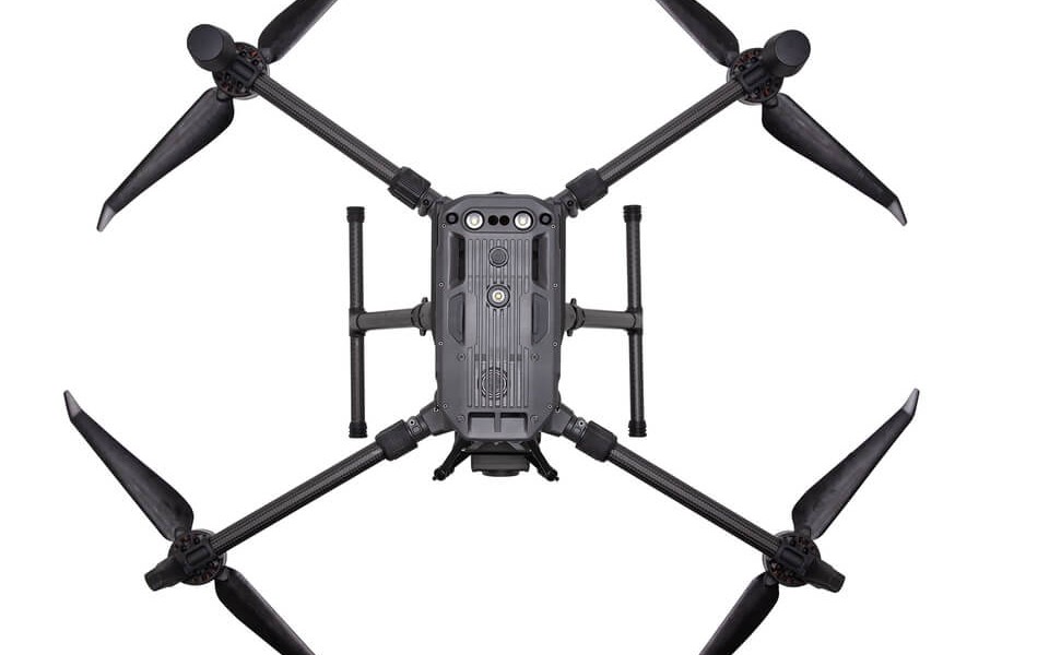 Une fois le DJI Matrice 300 RTK sorti de sa valise de transport rigide et déplié ses bras, vous remarquerez que les moteurs sont en dessous des bras. Le corps du Matrice 300 RTK, et donc son centre de gravité, se trouve au dessus des hélices. Cela permet une plus grande agilité, une accélération et une maniabilité accrues même par vent fort ou en conditions difficiles. Le châssis se trouvant au dessus du drone, les capteurs d'obstacles à 6 directions ont donc une vue dégagée de toute hélice ou autre accessoire. Enfin, pour l'homologation du Matrice 300 RTK, l'installation d'un parachute d'urgence sera plus simple et n’interférera pas avec les accessoires une fois le parachute déployé.